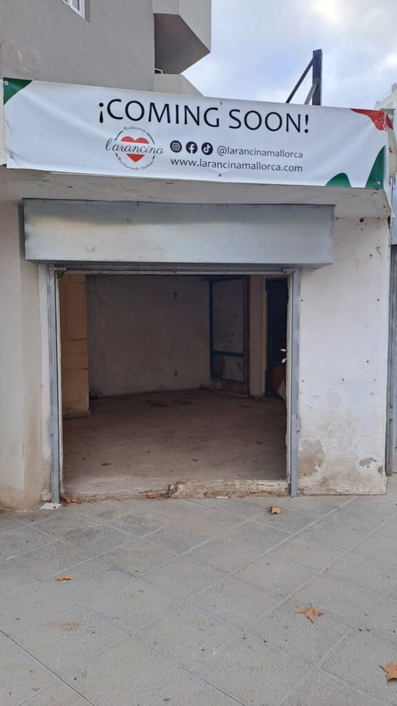 El local de Magaluf, de una sola planta y significativamente más pequeño que el de Cala Mayor. Cuenta con una cocina y un baño, pero el foco principal está en la preparación rápida de los pedidos para llevar. Aunque el espacio para comer dentro es limitado, hemos mantenido el estilo y la esencia de L’Arancina en cada rincón, asegurando que los clientes que decidan consumir allí disfruten de un ambiente acogedor y moderno.